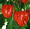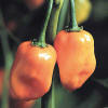 "A blistering hot pepper 40 times hotter than Jalapeno! Among the most potent ones we sell. Wrinkled fruit is 1 inch long and 1-1/2 inches wide, with a tapered end. Peppers begin as light green then turn to golden-orange and are loaded onto 36 inch tall plants. Thrives best in warm southern climates. 90 to 100 days."