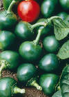 "1 1/2 inch round fruit with a slight taper; turn from deep green to red and have medium-thick walls. Use in salads and for pickling. 78 days."