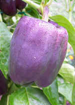 Beautiful new color in peppers is truly lavender with ivory-yellow flesh. Bell shaped fruit is 3 to 4-lobed and blocky, measuring 4-1/2 inches long and 3-1/2 inches wide. Peppers mature from ivory to lavender and finally to crimson, but they remain in the lavender stage longer than other purple peppers. Their thick flesh has a mild, sweet flavor. 70 days.