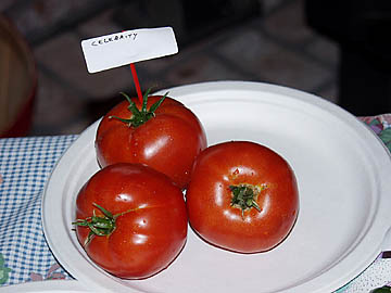 Determinate, 80 days. A UC Cooperative Extension taste test winner in 1999. I was happy to rediscover this old favorite in 2001. And it was a 2002 Farmer Fred Taste Test winner at our annual August tasting party. In our garden, it produced fruits well over one pound, great for slicing. However, the 2003 Ace 55 did not produce one tomato, despite being a vigorously healthy green plant. After a five year hiatus, another trial for the Ace 55.