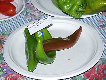 65 days. "This is a very productive version of NuMex 6-4 that offers more uniform peppers. 6 to 7-inch thick-fleshed peppers turn from green to red and are relatively mild to medium in flavor. Ripens earlier than most other peppers of its type. 65 days." The overall winner of the Farmer Fred Pepper Party Taste Tests in August, 2000. Great in chili! A Farmer Fred Favorite.