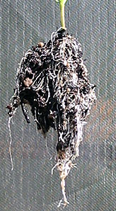 On 4.24.04, test subjects were transplanted from four inch containers into one gallon containers. Here's a look at the size of the root balls of some of the plants!