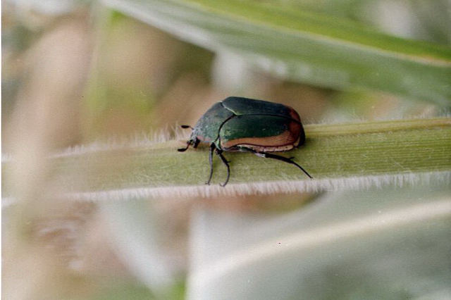 Entomologist Baldo Villegas of the California Department of Food and Agriculture says his office has noted the growing presence of green fruit beetles in southern Sacramento County this year. Just a few years ago, they had only migrated as far north as Fresno.